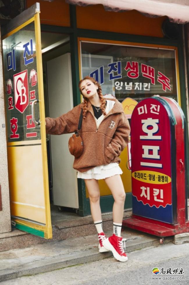 泫雅为她代言的服装品牌拍摄一组最新宣传照“小野马”嘻哈打扮魅力十足