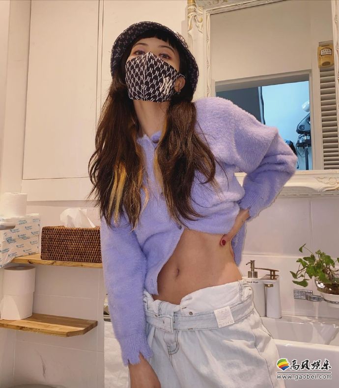 泫雅近日晒出一组照片,紫毛绒短上衣搭配白休闲裤,帽子口罩遮面扮可爱