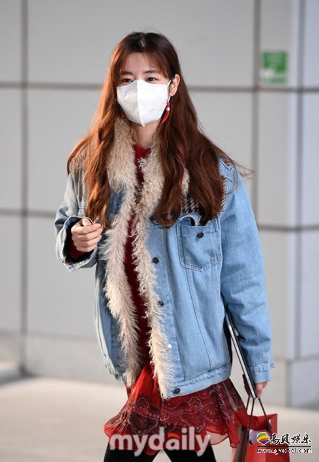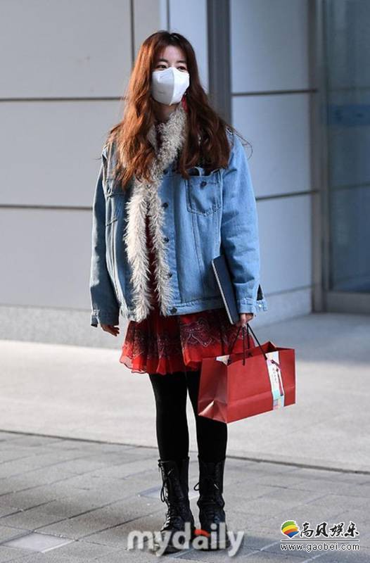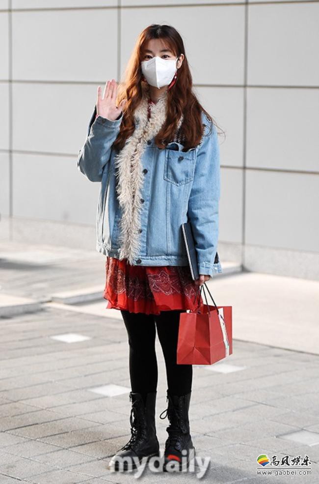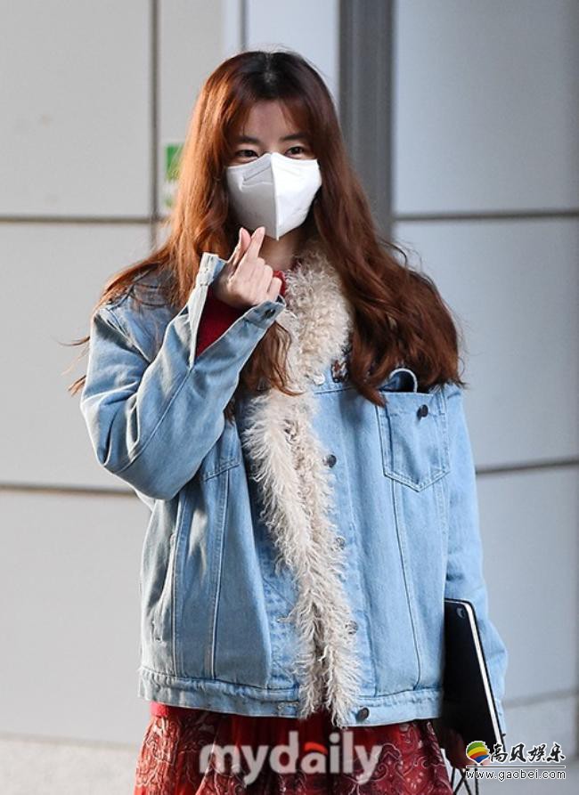 金圭丽近日现身TBS电视台拍摄节目!毛绒牛仔外套温暖时尚,面戴口罩与守候场外的粉丝与媒体打招呼。