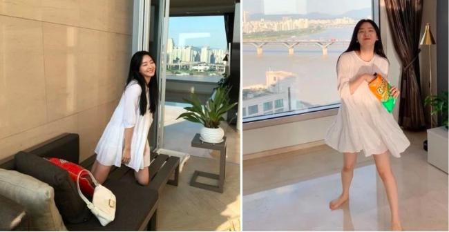 赵怡贤身上有一种淡然的气质,没有硬要争强夺胜的逼人气场,谈吐、举止落落大方,无欲无求的感觉是她气质中最重要的组成部份。 而通常拥有这类气场的女孩都家世不凡,不说是财阀富二代,也至少是家境殷实。 而突然在韩网上曝光的疑似赵怡贤豪宅的照片,似乎也验证了她是富家千金的猜测。 照片里,赵怡贤身处的房子有著大大的明亮落地窗,窗外就是汉江。 有网友扒出房子是某高档公寓,61坪售价85亿(韩币,下同)。 能住的起这么贵的房子,网友们推测「那赵怡贤应该是白富美吧」。 不过,赵怡贤在个人IG STROY里已经澄清过啦,称房子并不是自己的家,经纪公司也回应表示那是赵怡贤朋友的家,她本人住在离公司不远的小房子里,是个平凡的大学生。