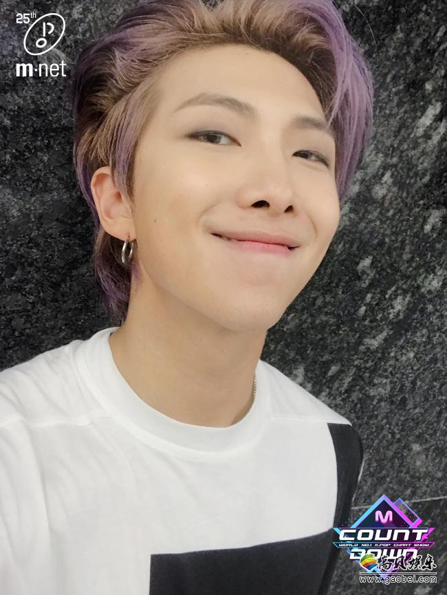昨日Mnet《M! Countdown》通过官方SNS公开了防弹少年团本日打歌舞台的自拍照片,第一个就是队长RM,紫色头发和温暖笑容让人看了心情都变开朗: