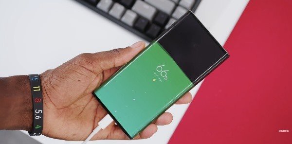 从博主MKBHD晒出的小米MIX Alpha真机图来看,后者采用环绕屏设计,取消了手机的听筒、前置摄像头、侧边按键,下巴和额头部分均采用收窄设计,侧边部分可显示电池电量、系统相关信息、通知信息。同时小米MIX Alpha环绕屏手机在充电时整块屏幕可以显示目前手机的大致电量情况。