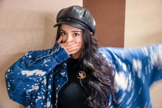 工作室晒出杨幂美照!身穿黑色紧身针织衫,外搭宽松牛仔外套,露出纤腰