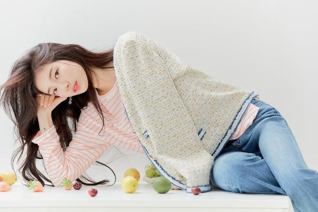 和各式各样水果在一起的秀智,也像清甜的水果一样散发著迷人的魅力,整个画面充满了春日和初夏的美好气息: