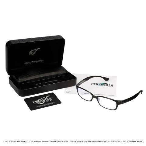 FF7主题眼镜腿上设计元素分别是克劳德的大剑和LOGO,眼镜盒、眼镜布和卡片都有着FF7的元素。