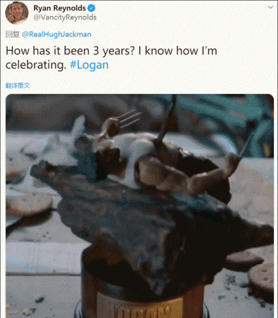 身为“耍贱小能手”的瑞安·雷诺兹怎么会放过这么好的互动机会呢,于是他便在休叔的照片下面po出了一张动图,而上面居然是玩具还原的《金刚狼3》罗根最后牺牲的场面。“这三年过得咋样,我知道我要怎么庆祝一下。”