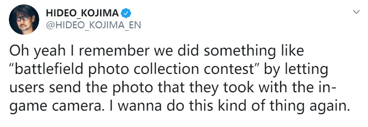《死亡搁浅》将在PC版实装照片模式,网上关于它的讨论也逐渐增多了起来,而说起照片模式,《合金装备》系列也是这一模式的老顾客了。小岛秀夫今天在发布《死亡搁浅》拍照模式宣传片后,还在推特上聊起了之前《合金装备》(1998年)中的照片模式。