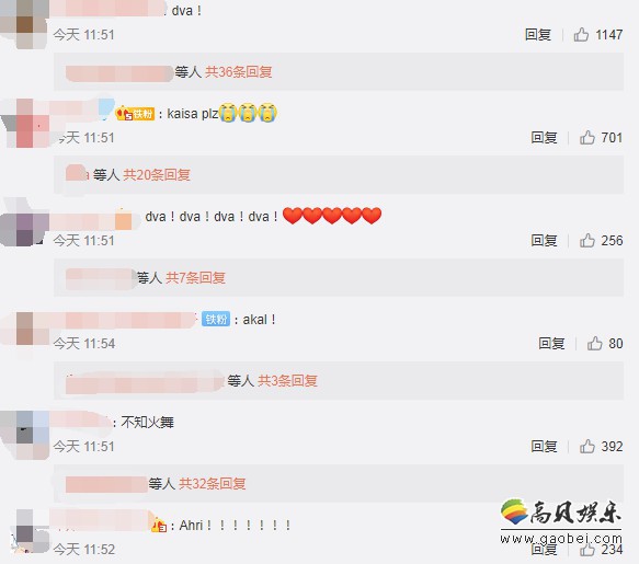 热评中呼声最高的是《守望先锋》D.Va,《英雄联盟》角色有卡莎、阿卡丽、阿狸等等,此外还有不知火舞、蕾姆等等。不知道最后她会选择谁。