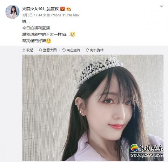 吴宣仪微博晒出美照,她头戴皇冠好像公主一样,长发披肩露甜笑气质满分