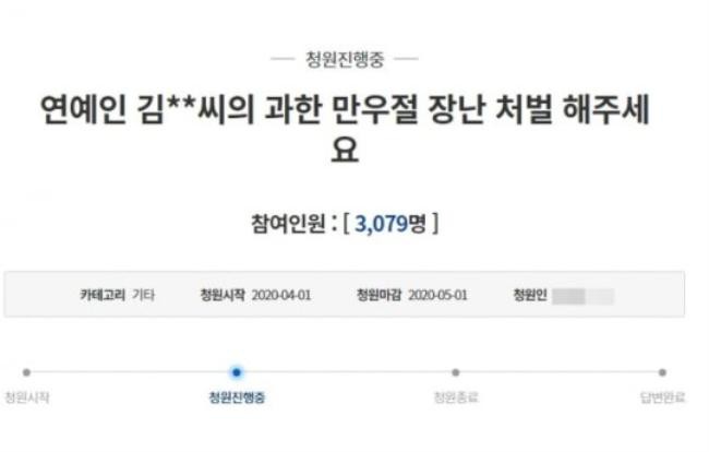 金在中拿疫情开玩笑的行为在韩国引发了众怒,今天下午就有人在青瓦台网站发起请愿要求处罚金在中,而该请愿短短一个小时就吸引了超过三千人参与。