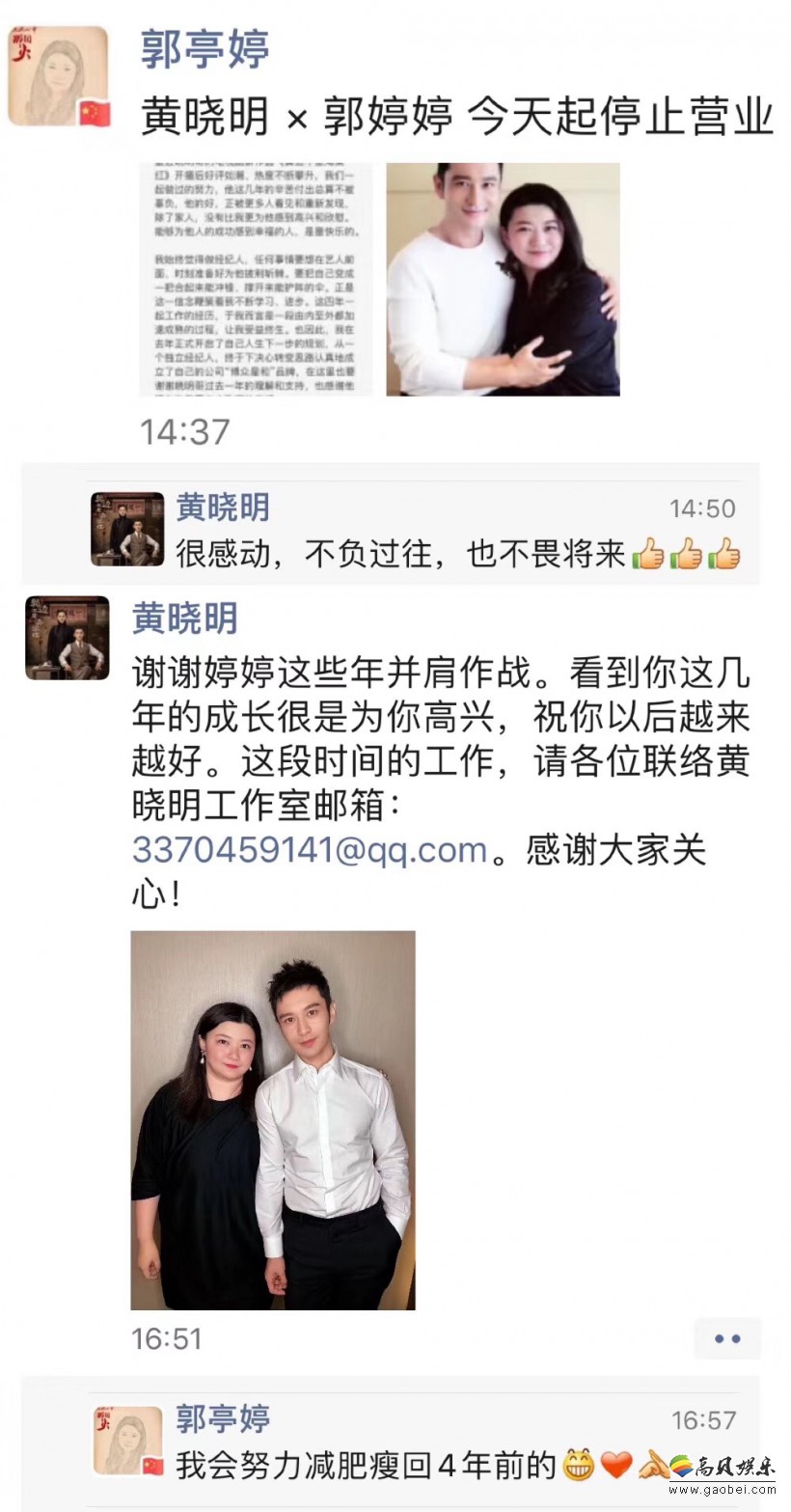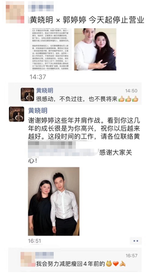 黄晓明朋友圈宣布与经...