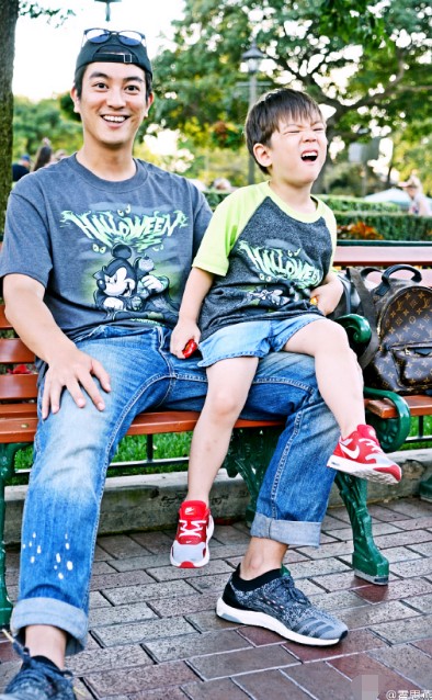 霍思燕一家在迪士尼游...