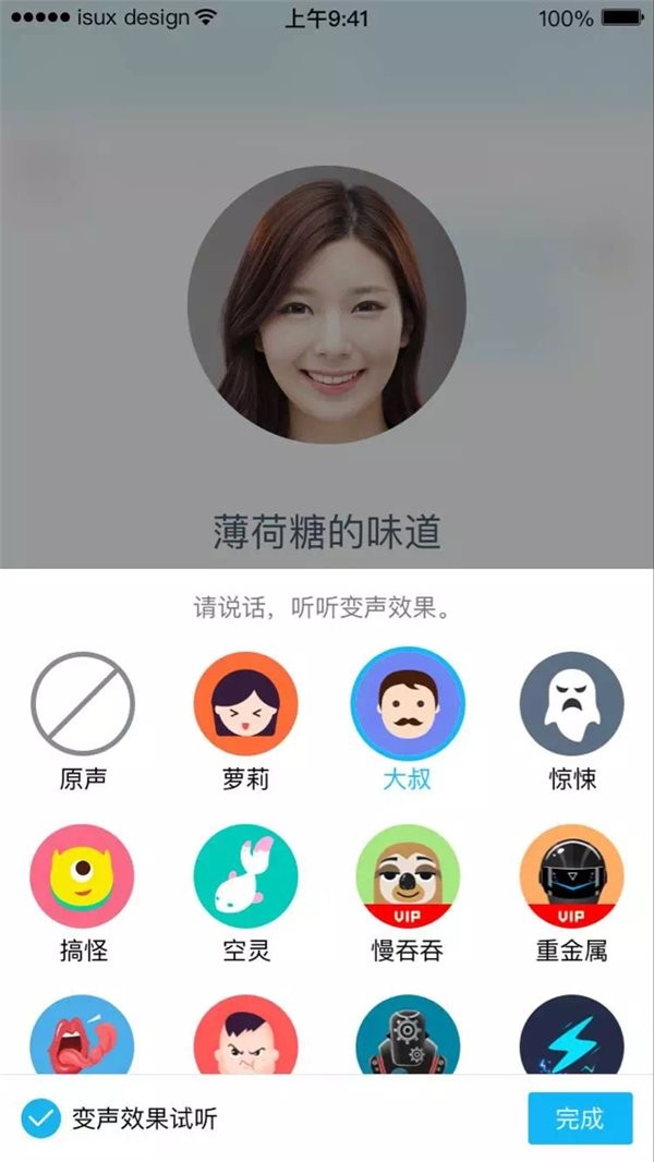 用户可以在语音通话中,实时变声萝莉、大叔等一共11种音效,让聊天更个性更有趣。