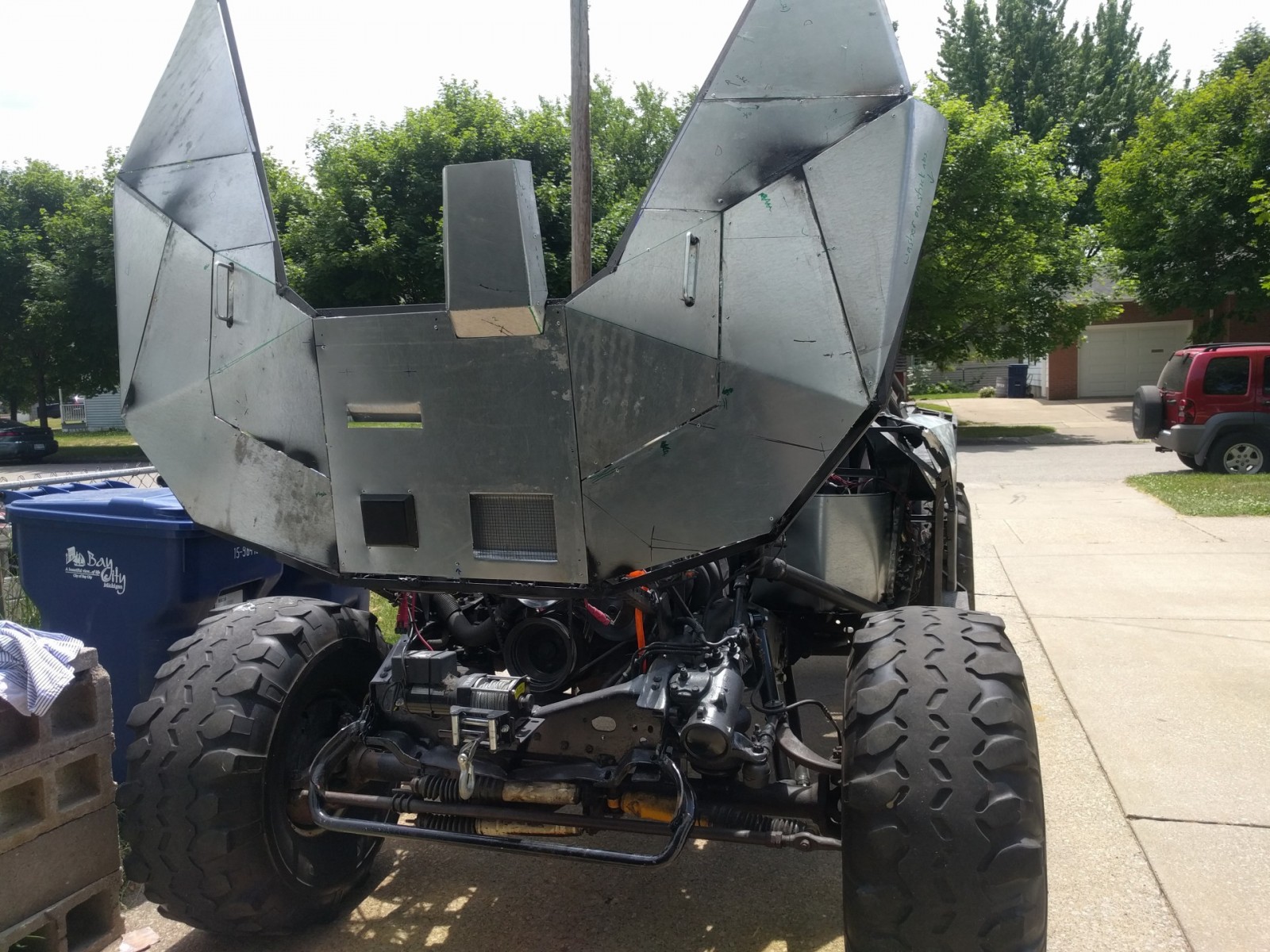 据悉,Bryanthavercamp选用了一辆1984款的雪佛兰K10汽车改造,掀掉整个汽车然后利用框架,引擎替换为Chevy 350款4门第一版V8引擎,采用L31档流板,以及拥有600CFM排气量的汽化器。另外,车身各种配件,大部分均采用3D打印制作。