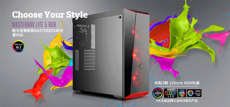 从MasterBox Lite 5机箱的诞生,结束了硬朗横行的时代,再到CPU-Z酷冷至尊定制版的散发,靠拢玩家和粉丝走进内心,这些都是酷冷至尊品牌价值观的体现。随着RGB灯光的热潮引导,MasterBox Lite 5RGB(睿RGB)也终于在国内上市了,搭载全方位RGB灯光系统、引入高透光质感的灰色钢化玻璃侧板,售价499元目前在京东晒单还可返50元E卡。