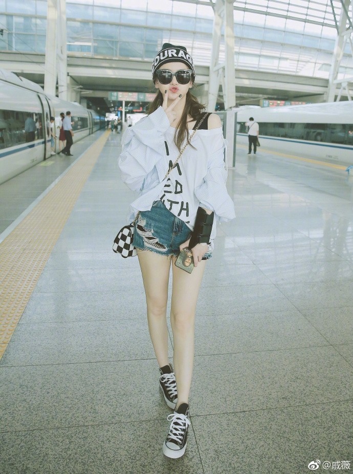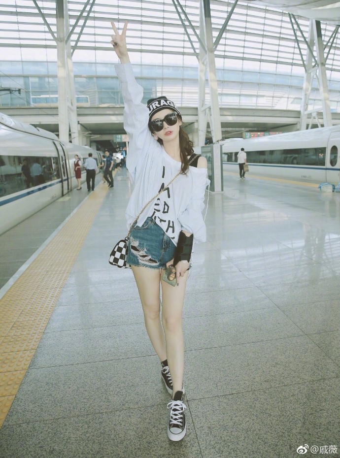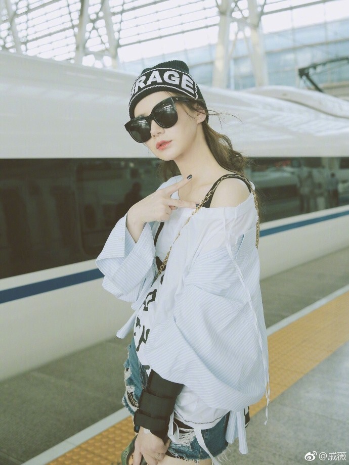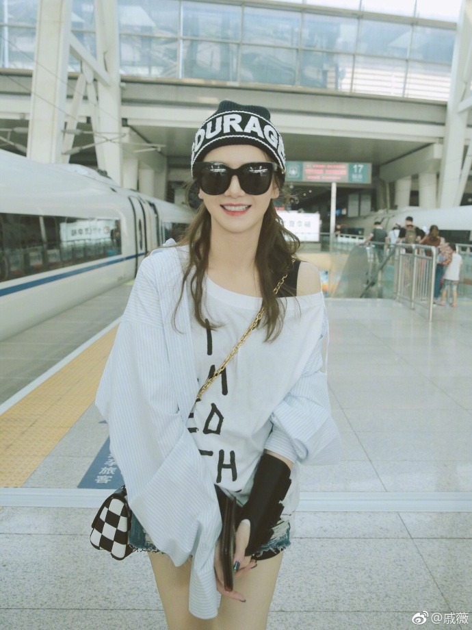 8月21日,戚薇在微博晒出一组照片,并配文称:“既然摆都摆了,那就有始有终,凑齐一来一回,高铁摆拍Freestyle。”
