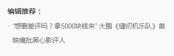 大鹏称《缝纫机乐队》遭恶意差评,影评人发文反击,称没靠骂电影做生意,自己是看完电影后不喜欢才打的一星,不信可以调出影院监控,还指出大鹏疑似炒作。