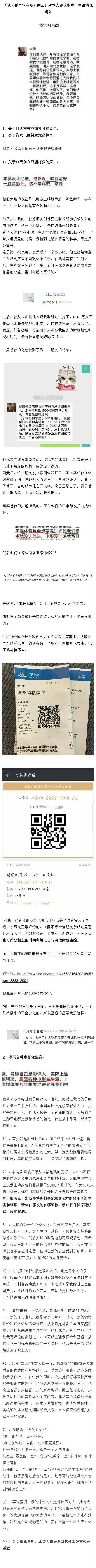 而最新情况是,“二月鸟语”发文反击,称没靠骂电影做生意,自己是看完电影后不喜欢才打的一星,不信可以调出影院监控,还指出大鹏疑似炒作。