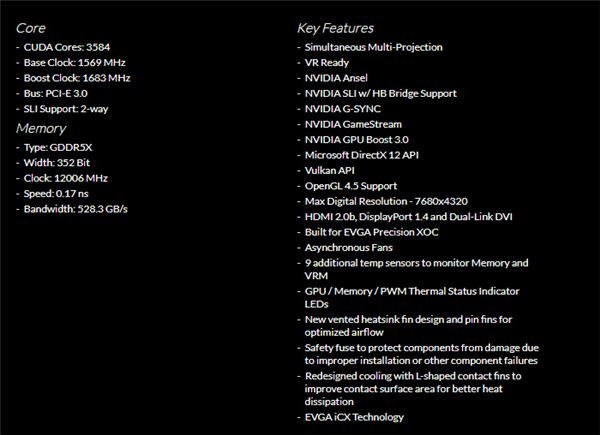 根据TechSpot报道,北美厂商EVGA近日推出了一款显存强化版本的GTX 1080 Ti FTW3,显存频率被超频至12Gbps,因此名称后缀加上了象征精英的Elite。虽然这很可能对于玩游戏的体验没有什么提高,因为原本的显存就不可能是瓶颈,但是提升之后的显存带宽被提升至528GB/s,这个数字甚至要比当年初次使用HBM的Radeon R9 Fury X所能提供的512GB/s带宽还要高。