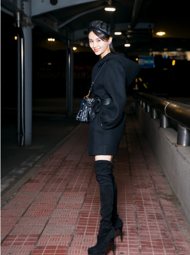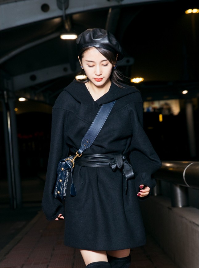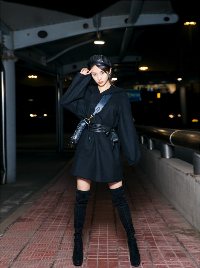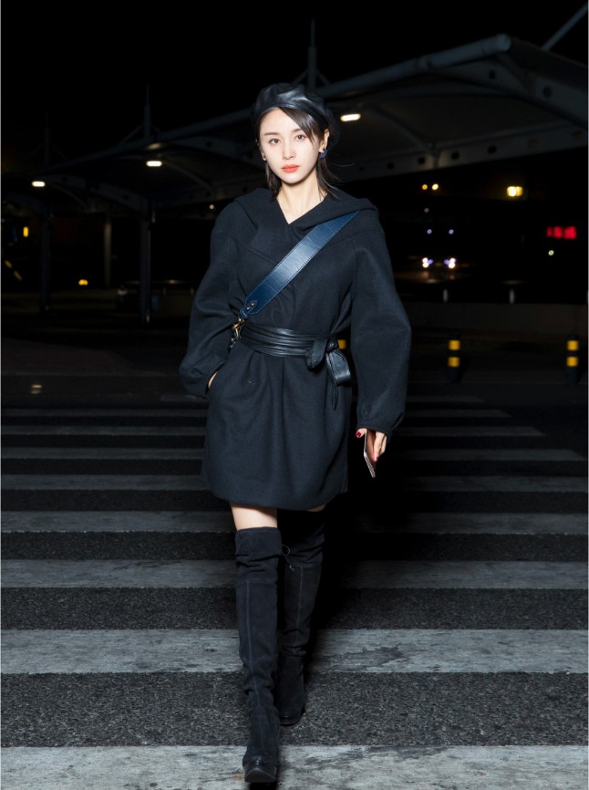 王子文现身首都机场,一身精致时髦的初秋穿搭优雅迷人,以最佳状态启程巴黎时装周。曝光的机场照片中,王子文身穿黑色V领连帽裙衫,腰间皮质系绳款腰带衬出她纤细的腰肢,擅长利用身材比例的王子文再次拿出加分利器长筒靴,丝绒质感的长靴彰显精致女人味,衣品满分。
