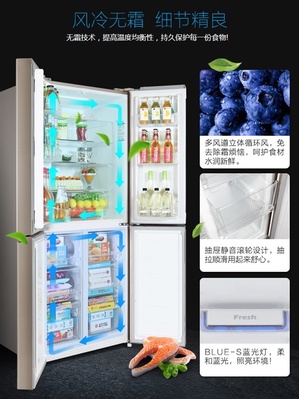 格力正式推出旗下首款智能冰箱。冰箱采用十字对开门设计,大小为762.5x705x1800mm,总容积458L,其中冷藏290L,冷冻168L,售价6498元。其中,冷藏室采用无梁横宽搁架设计,方便放下长度较长的食材;冷冻室为6个分类抽屉,方便食材按类放置。