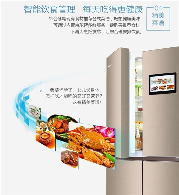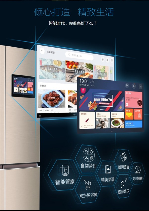 据悉,格力智能冰箱基于京东“智能显示交互”硬件模组方案、整合Android OS底层优化实现的智能软件解决方案打造,配备10.1英寸多彩触控屏,能记录食材的保存天数,甚至在冰箱上直接网购食材。此外,格力智能冰箱还能根据冰箱存储的食材推荐菜谱。