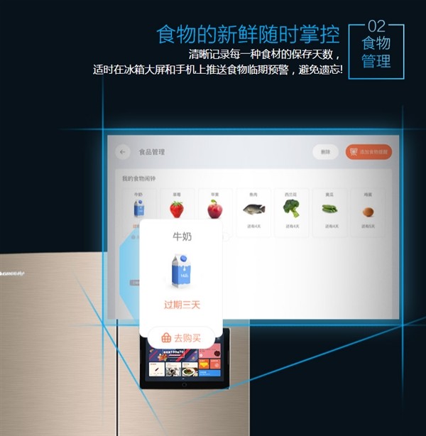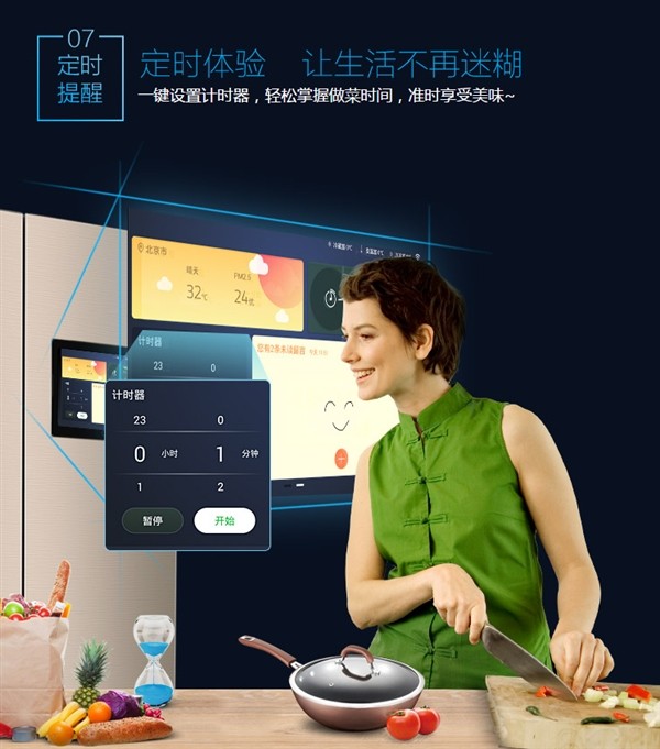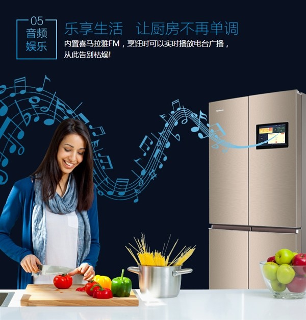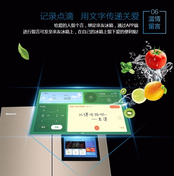 除了上述功能之外,格力智能冰箱还内置喜马拉雅FM,可以在做饭时播放电台广播;格力智能冰箱还支持绑定APP,手机随时调节冰箱温度及各种模式,并且可以通过手机APP向冰箱屏幕推送留言。