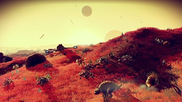 《无人深空》则在表达方式上选择了更加艺术化的类型。制作组在星球上加入金色的云彩、奇形怪状的岩石和漂浮在天空中的云朵,虽然看似荒诞,但因为我们对外太空的陌生,又让我们觉得这种荒诞似乎有些真实。更加微观的视角让玩家踏入每一个星球的时候都觉得这个星球独特而美丽。