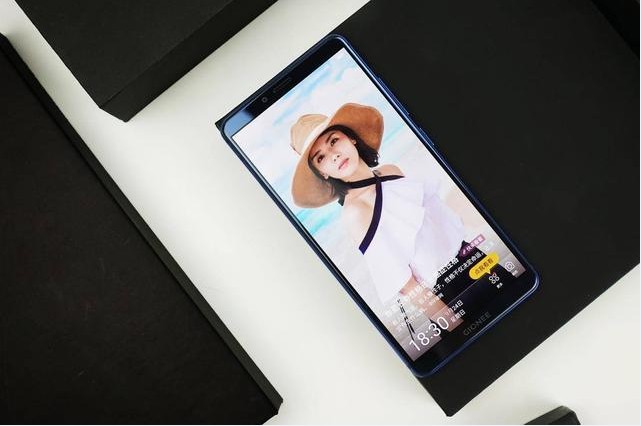 金立M7的轮廓较为方正,并且边框、额头下巴长度都控制的不错,在这类造型中屏占比和屏幕视觉冲击感已经做得不错,但其最大的缺点是整体感不够强,屏幕四角仍采用传统的直角设计,略显生硬。或许正面取消logo会让该机看上去更紧凑。