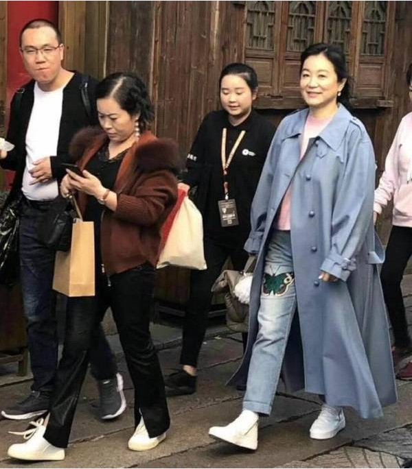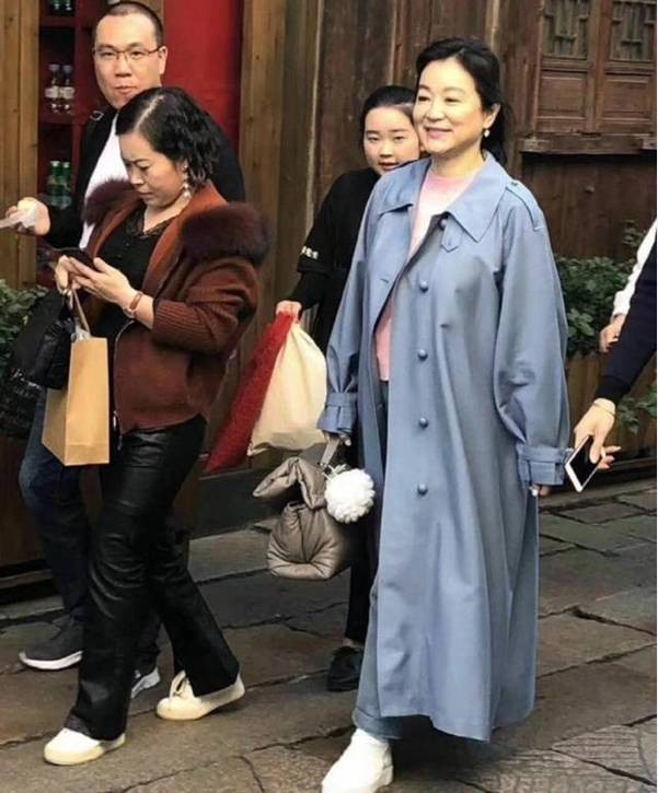 从背后看,林青霞的身材已经没有年轻时苗条,但大家就是爱她的自然。
