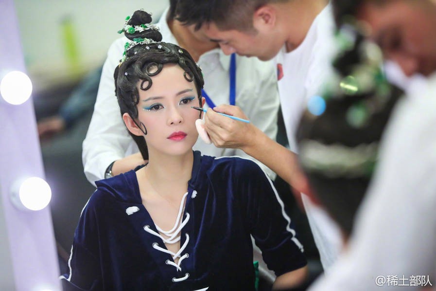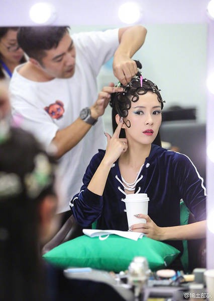 化妆中的章子怡。