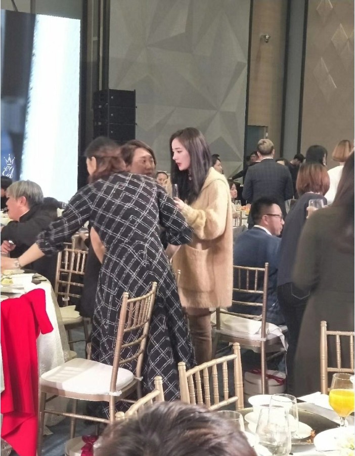 11月11日,杨幂忙里抽空了参加经纪人尧尧的婚礼,有网友晒出了婚礼现场路透图,杨幂手上端着红酒和友人们热络聊天。她本人也发微博祝福经纪人新婚快乐:“新婚快乐,今天你最美,我也美[憧憬][憧憬][憧憬]”配图不仅有新娘的婚纱照,还有自拍,嘟着嘴的杨幂十分可爱。
