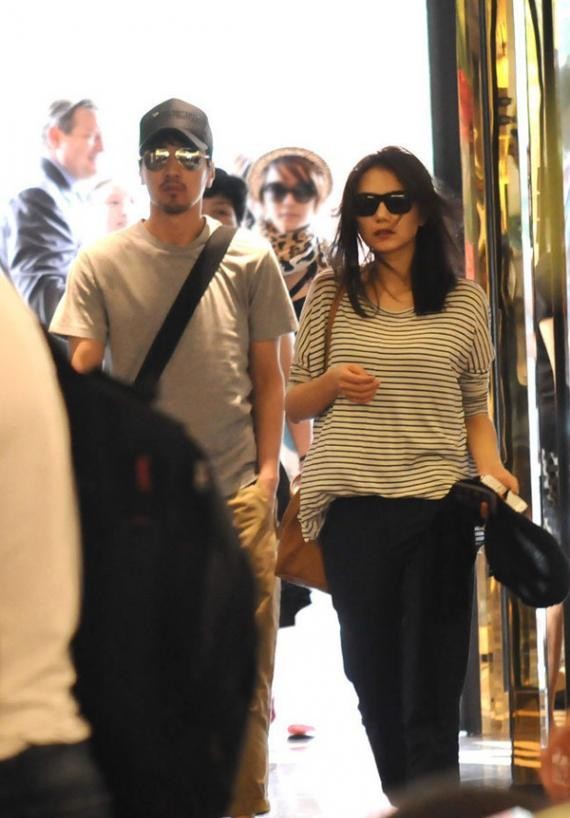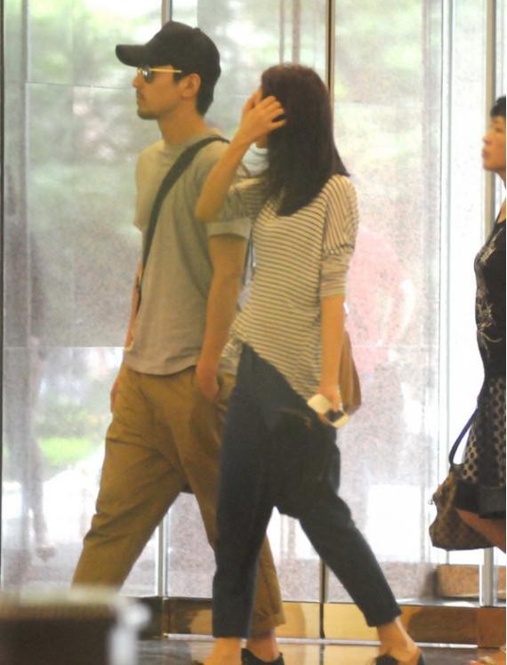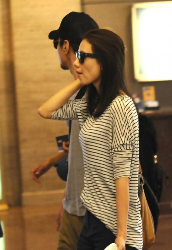 高圆圆与老公外出穿着...