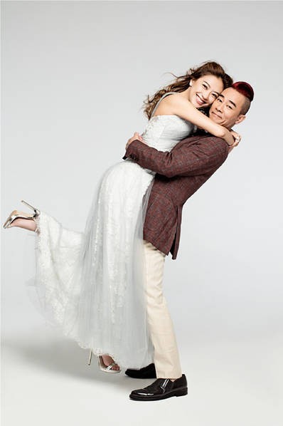 陈小春与应采儿搞怪写真