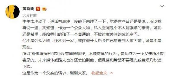 中午太冲动了,说话有点冲,冷静下来理了一下,觉得有些话还是要说,所以我再说一遍。我知道,作为一个公众人物,私人空间是个不太能强求的事情。可我还是希望,能给我们的孩子一个普通的,不被过度关注的成长空间。
