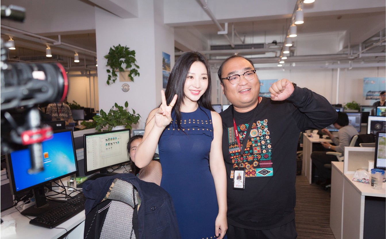 2017年11月15日,杭州,柳岩、丁磊空降某游戏公司总部,柳岩身穿一袭蓝色裹身裙大秀美腿,曲线毕露十分性感,女人味十足的同时又帅气潇洒,柳岩手持道具枪大摆pose尽显酷帅,随后柳岩、丁磊一同参观游戏制作部门,所到之处都被热情的员工围堵,柳岩报以甜美微笑回应。柳岩、丁磊还与两位游戏达人组队开玩,整个直播过程轻松搞笑。