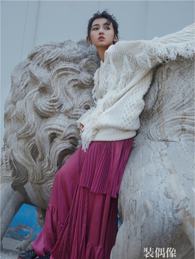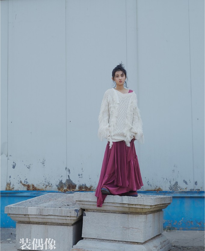 近日,张子枫曝光一组时尚大片。镜头中,张子枫扎着随性丸子头,身穿白色oversize流苏毛衣搭配玫色质感长裙,慵懒的倚靠于街头雕塑旁,眼神清冷洒脱;而在另一组棚内look中,张子枫另类驾驭超大号衬衫,眼神飘向天空,透出少女纯真气质,时尚而不失稚气。