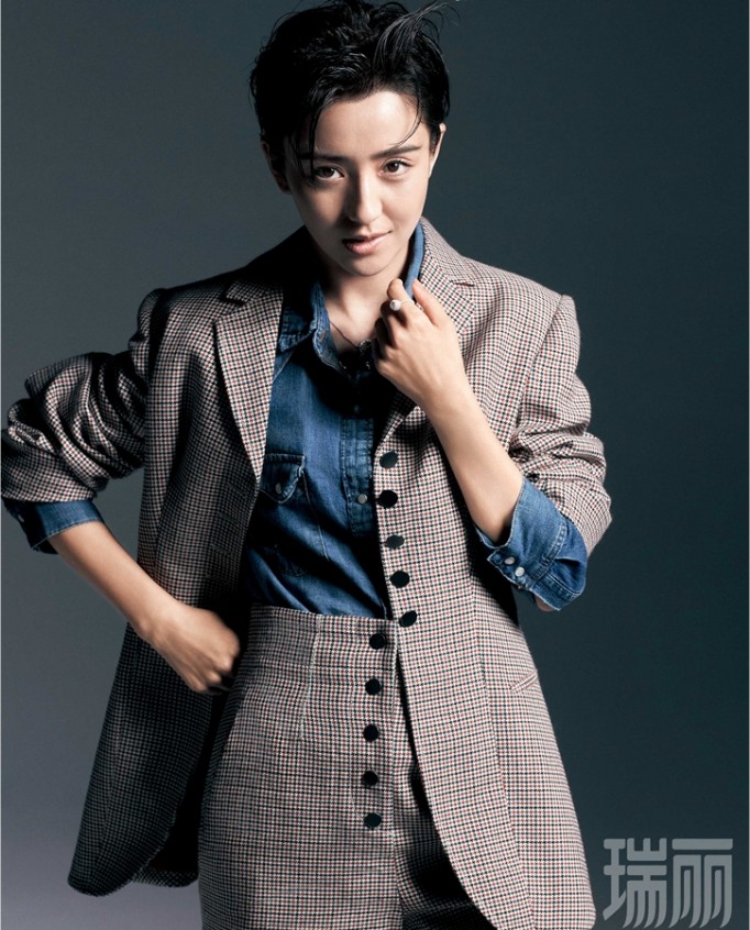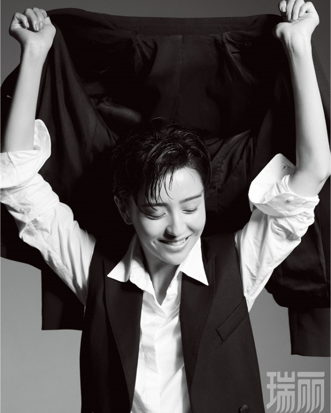 另一套造型中,黑色马甲配白衬衣,慵懒随性,配上佟丽娅的迷人微笑,痞帅又俏皮,完美诠释了爽朗率性的一面。