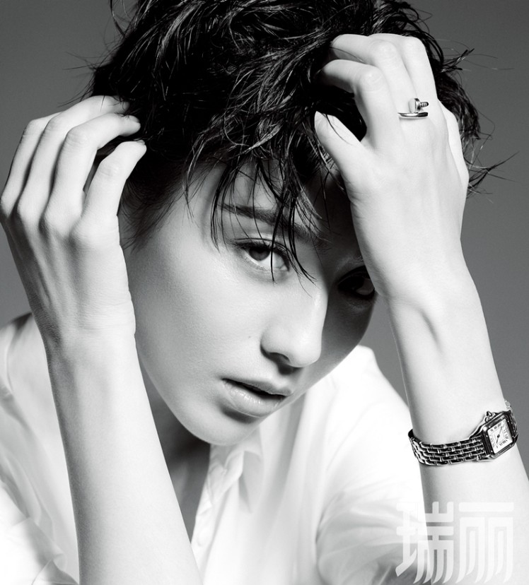 大片中,佟丽娅换上比以往更为利落的短发,简约白衬衫搭配金色饰品,化身帅气cool girl,冷峻而不失美感。