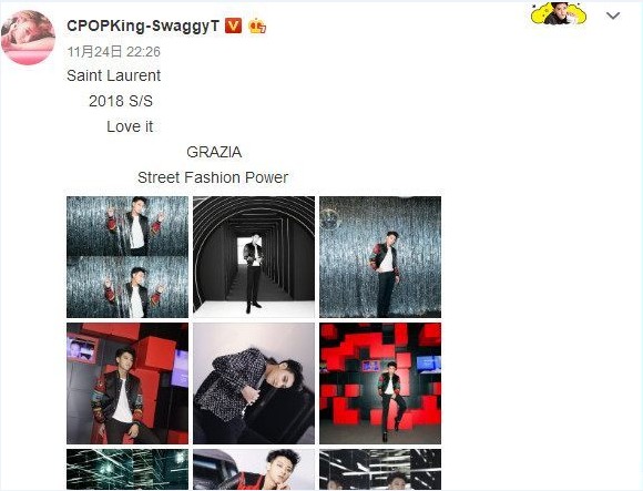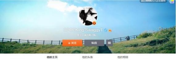 黄子韬悄悄改了微博名称,“CPOPKing-SwaggyT”前者指的是华语流行乐之王,而Swaggy则是指很潮、很有个人风格的意思,整串看起来就是“华流之王-很潮的韬”,超狂称号引起热烈讨论,有网友直言:“周杰伦都不敢说自己是Cpop King了!”有人则认为他是一个很耿直的人,有如此自信也不是件坏事,“人因梦想而伟大”。