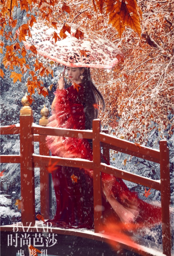 近日,人气女演员张天爱受邀拍摄的一组最新时尚封面大片正式曝光,画面中,张天爱或在红叶与飞雪中媚眼含羞,或在紫竹与纱幔中丹唇逐笑,演绎大唐盛世极乐之美,惊艳满分。