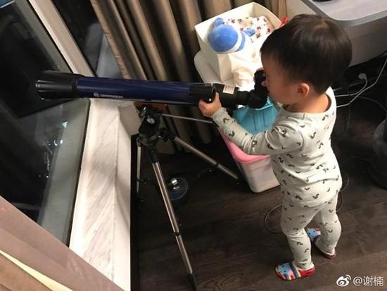 11月27日,谢楠更新微博,晒出两张儿子吴所谓的照片,并称:“买了寻星镜,结果到目前为止,我的眼前一黑。求攻略”。照片中吴所谓穿着一身可爱的睡衣,执着地眯着眼睛,通过没打开盖子的寻星镜,透过关着的窗子,仰望星空。