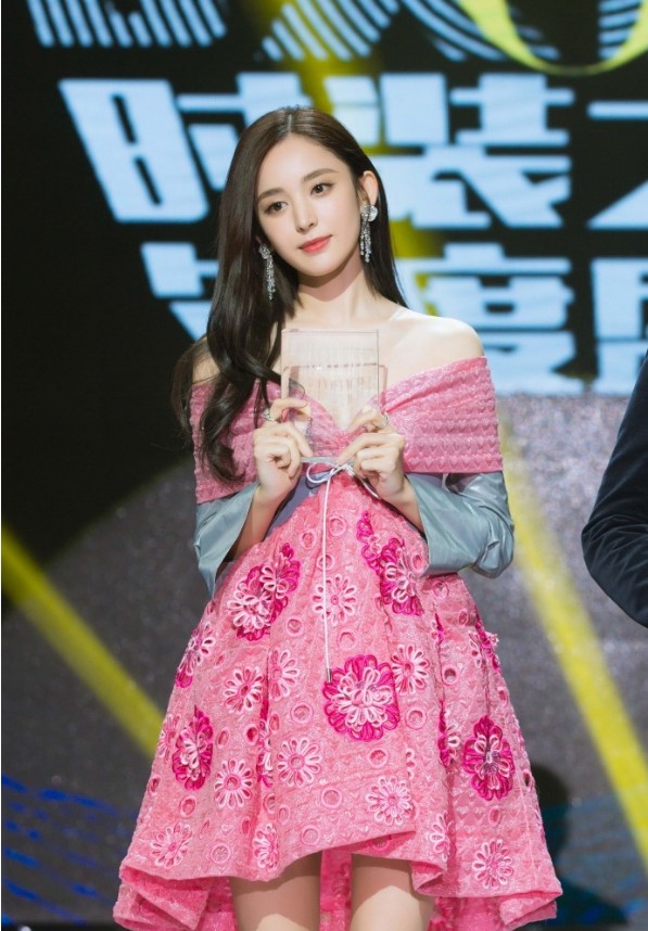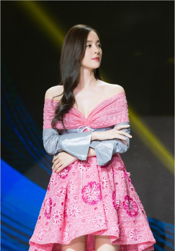 古力娜扎出席某时尚活动:身穿粉色裙,妩媚撩发秀美胸