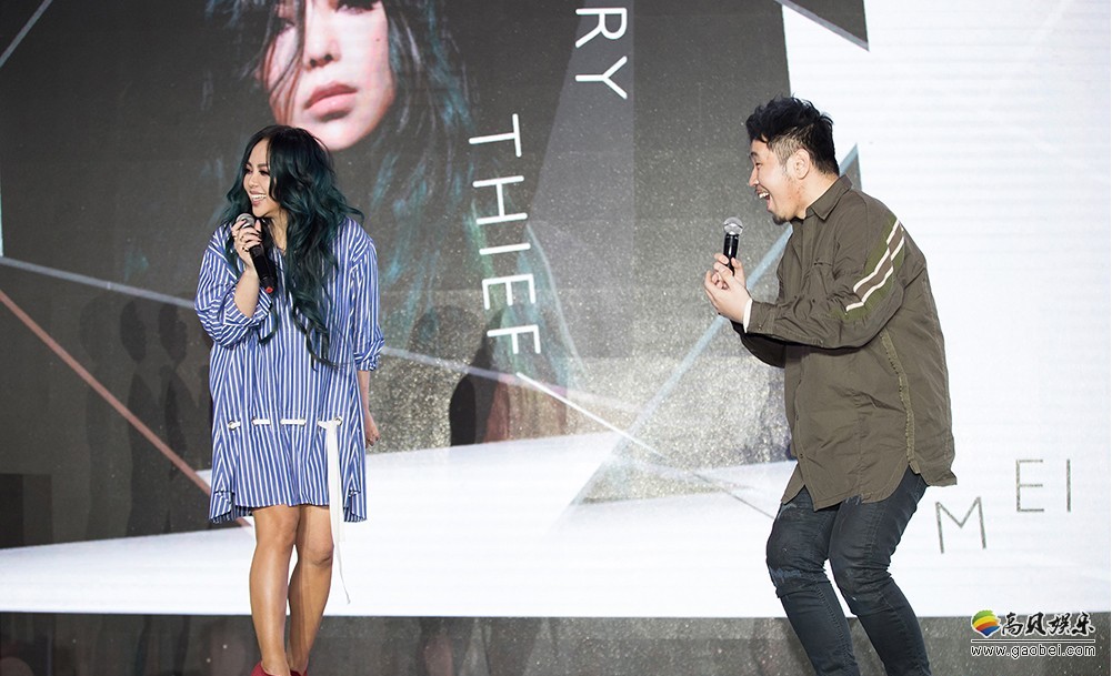 aMEI全新国语专辑《偷故事的人》“偷袭”又“偷心”,首波主打《偷故事的人》和抒情主打《连名带姓》率先登陆数位平台抢先与广大乐迷粉丝见面。均取得一致好评,网友们纷纷留言分享自己的情感故事。分享会现场,为祝愿“神偷”aMEI《偷故事的人》专辑大卖,唱片公司高层环球音乐大中华区总裁暨执行长张松辉先生、环球音乐大中华区环球中国董事总经理吴佳伦先生、台湾环球音乐董事总经理叶玫君女士、香港环球音乐董事总经理黄剑涛先生、星马环球音乐董事总经理王骏荣先生、环球音乐东南亚区市场策划部高级副总裁Yvonne Yuen一起向aMEI赠送了一座由19瓶香槟组成的香槟塔!寓示着《偷故事的人》是aMEI第19张个人专辑。而最顶层的金粉色香槟则象征着aMEI缔造的独一无二的音乐成就。希望“妹神”的音乐作品犹如顶级的香槟王,浓醇甘甜,反复品味回味无穷。“aMEI有故事,我们有美酒,愿她的音乐细水长流。”