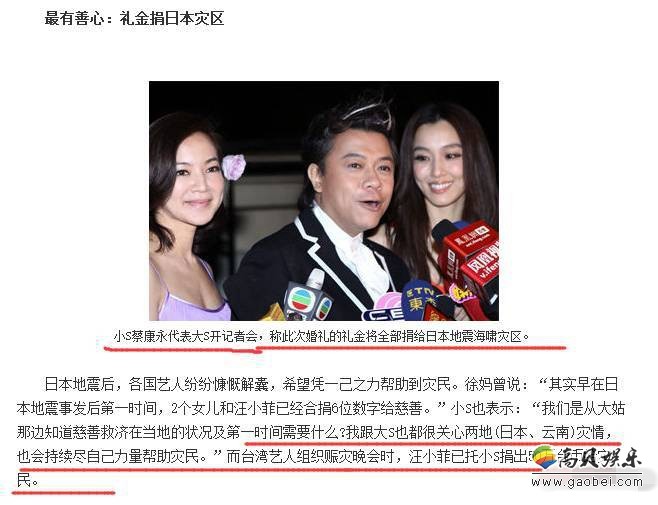 汪小菲和大S结婚同样没少收红包,但最后将彩礼全部捐给灾区。