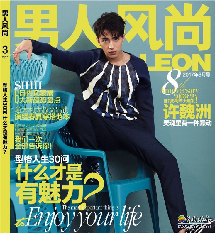 从一月到十二月,许魏洲接连登上《时装男士》、《悦己SELF》、《风度men's uno 》、《ELLEMEN》香港版、《Nylon》、《周末画报》style版、《风度men's uno Young!》创刊号等22家时尚杂志的封面,成为2017最热封面人物。22个封面,或时髦大胆、或优雅复古、或活力十足,许魏洲演绎百变风格,展现出不俗的镜头表现力,时尚感满分!