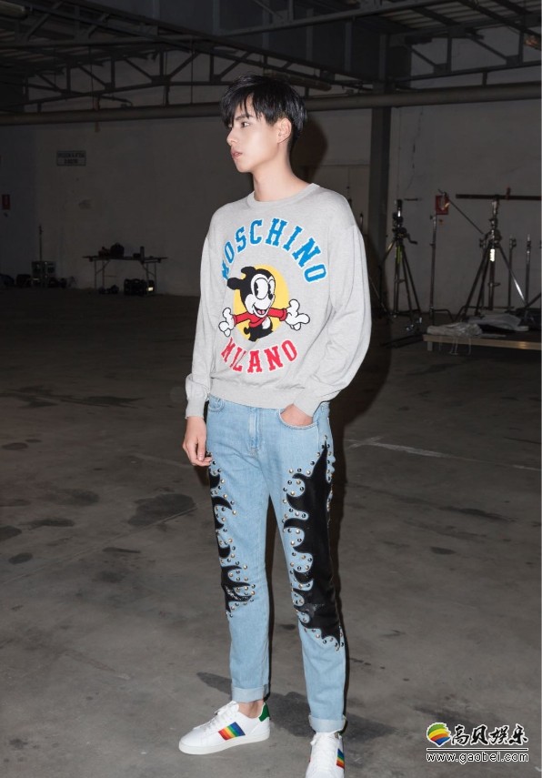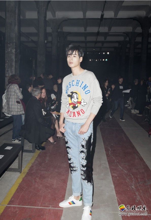 作为时装周的首次亮相,胡一天选择了与他风格相符、活力十足的MOSCHINO品牌,作为亚洲区唯一受邀明星出席MOSCHINO 2018秋冬男装和女装早秋系列大秀,卡通卫衣搭配牛仔裤,如游戏在复古工厂中的活力青年。