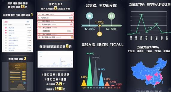 从《溏心3》的核心受众来看,年轻化、高学历的人群成为《溏心3》受众的一大主力,其中以本科以上学历所占比重最大,高达 45.68% 。作为一部合家欢剧,其受众年龄囊括了18到45岁以上的人群,但作为网播模式,年轻化也是主要特征之一,其中18到29岁之间的受众占比达63.49%。对于喜爱港剧的受众来说,《溏心风暴》是仍心中不可撼动的港剧经典,《溏心3》一经播出就受到全国各地观众的喜爱,其受众遍布全国各省市,尤其对广东、浙江、江苏等地影响较广。