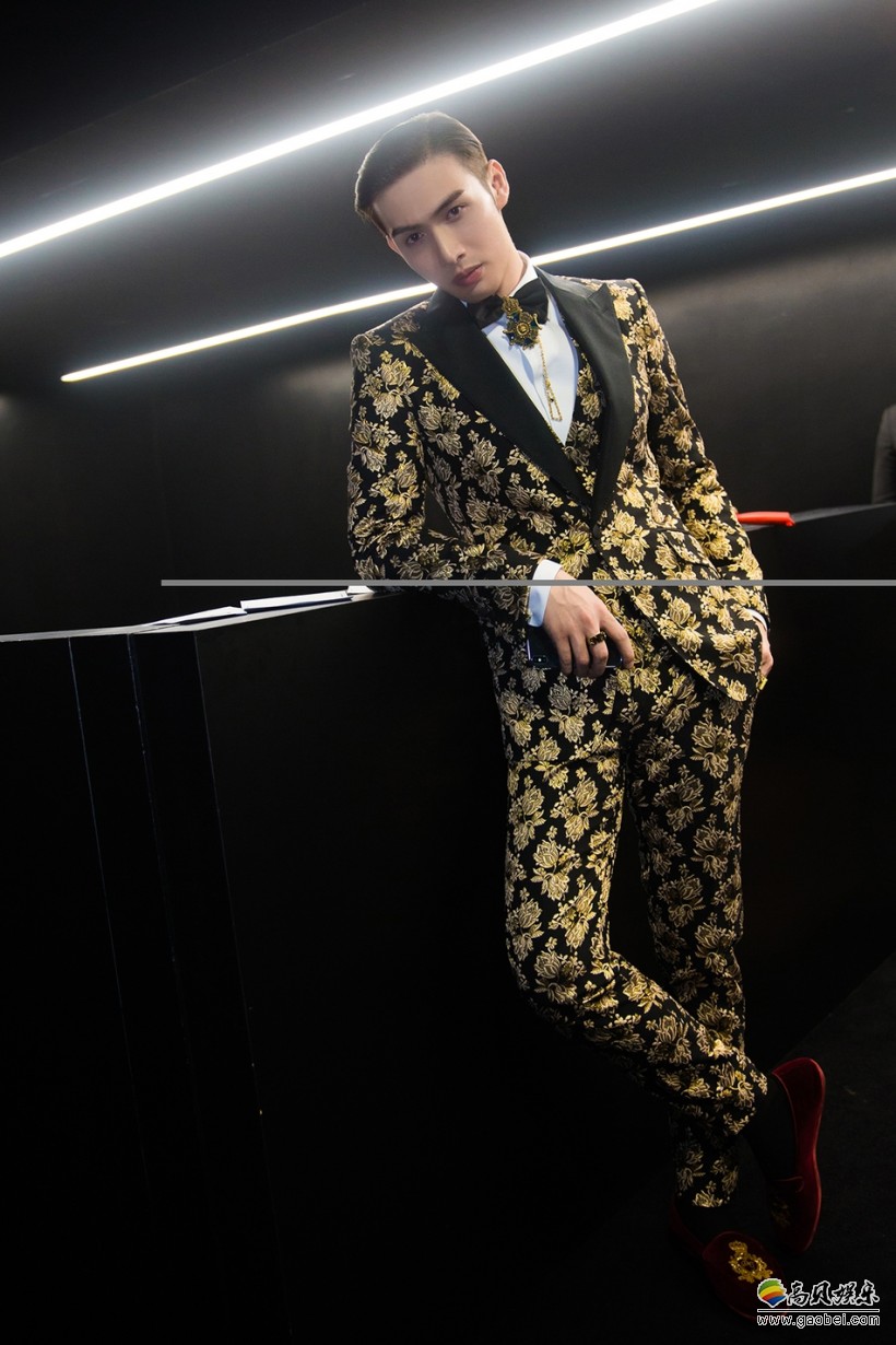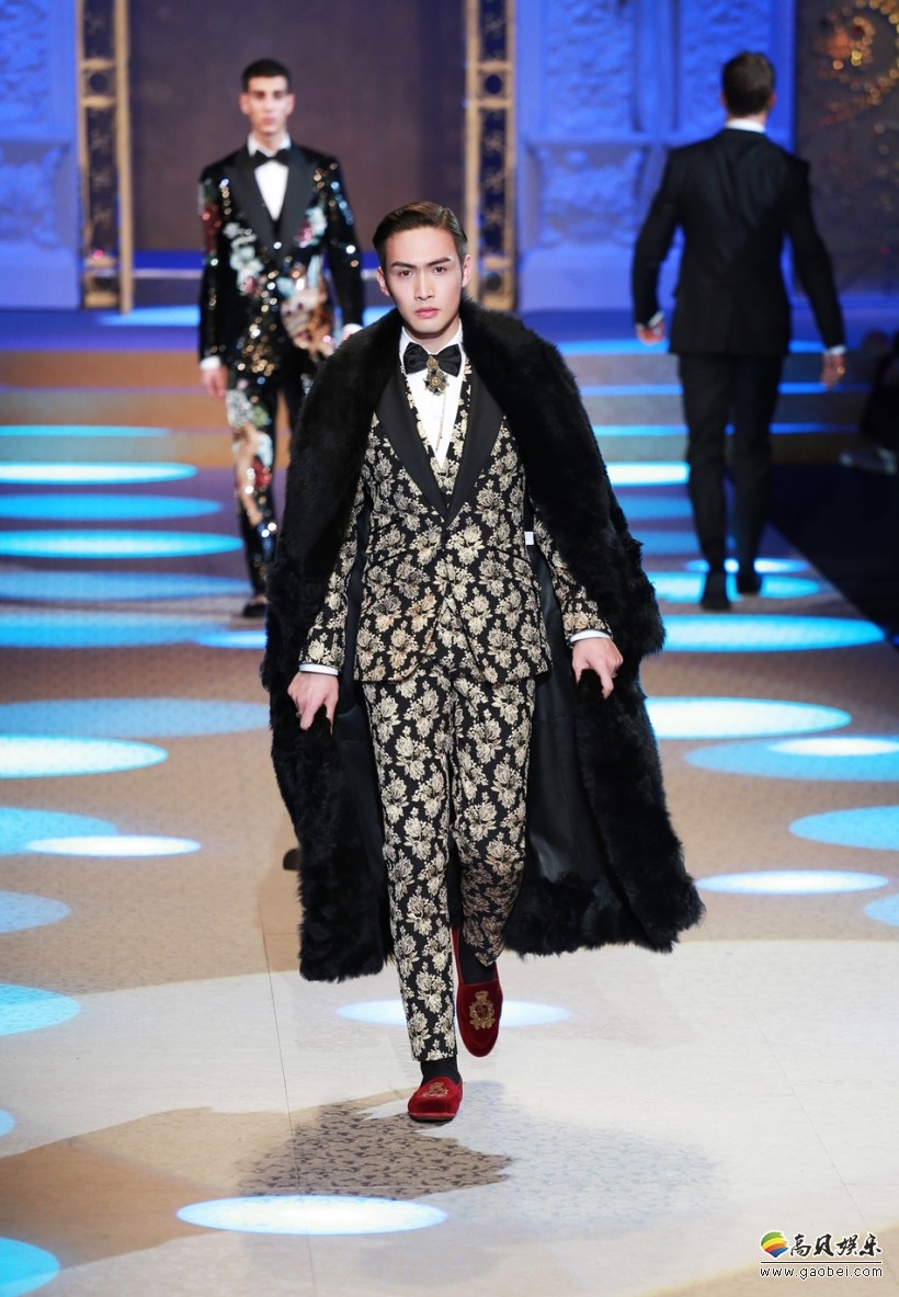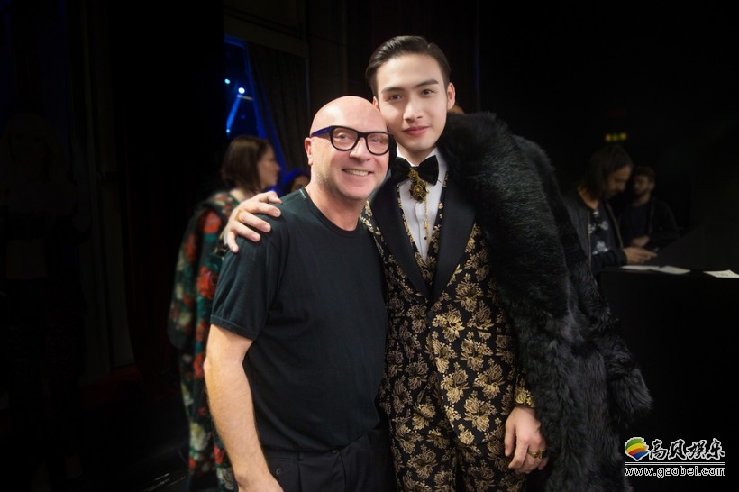 Dolce & Gabbana 2018秋冬系列“King’s Angel”主题时装秀在米兰举行,张彬彬变身模特走上T台献出首秀。他身穿金丝印花西装套装,外搭黑色长款外套,小领结配花型领针更添精致设计感。张彬彬在T台上化身霸道总裁气场全开,展现完美高贵气质。还在秀场后台与设计师Domenico Dolce交流合影。