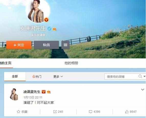 凌潇肃发文致歉:演砸了!对不起大家
